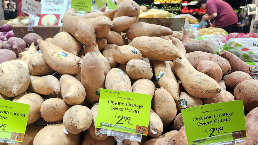 “We usually carry the traditional, orange-fleshed sweet potatoes, but when cost and availability allow, we also bring in Japanese sweet potatoes,” Penta adds. “They’ve really grown in popularity with customers looking for a sweeter, nuttier option, and they shine when roasted. We sometimes carry purple varieties, too, though those are more niche and, again, depend on sourcing and pricing.”