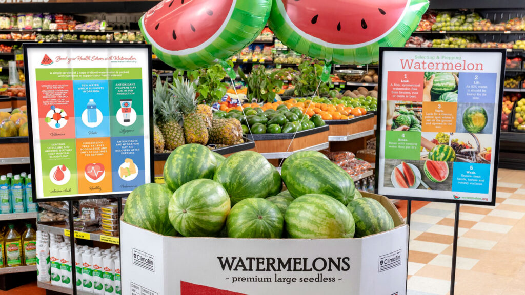 According to NWPB’s Rosado, a well-executed display should highlight key health and nutrition benefits, and include selection tips near the bins to help customers easily choose the best watermelon.